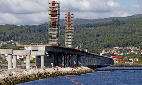 El puente sobre la ría es el emblema de la esperada y controvertida variante noiesa. Marcos Creo