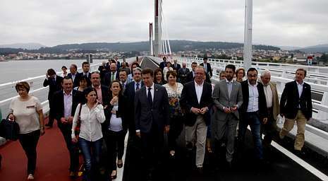 Ante el atril, también los responsables de la Administración autonómica presumieron a gusto de la variante noiesa y, más concretamente, del puente que cruza la ría.